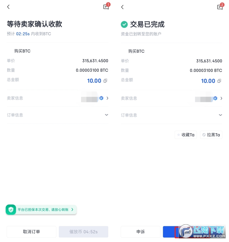 卖家确认收款并放币后,即成功买入一笔数字资产,您可点击“查看资金”按钮查看您的资产。